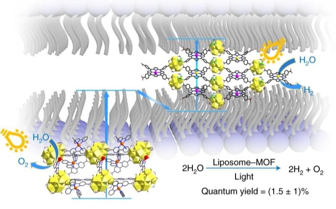 23. Metal–organic frameworks embedded in a liposome facilitate overall photocatalytic water splitting